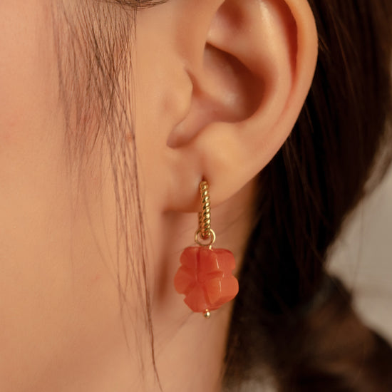 Carved Botan Carnelian Twisted Huggie Hoop Earrings