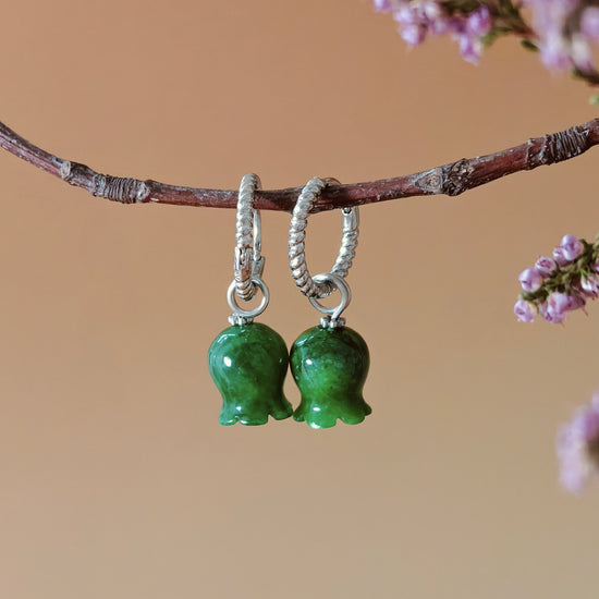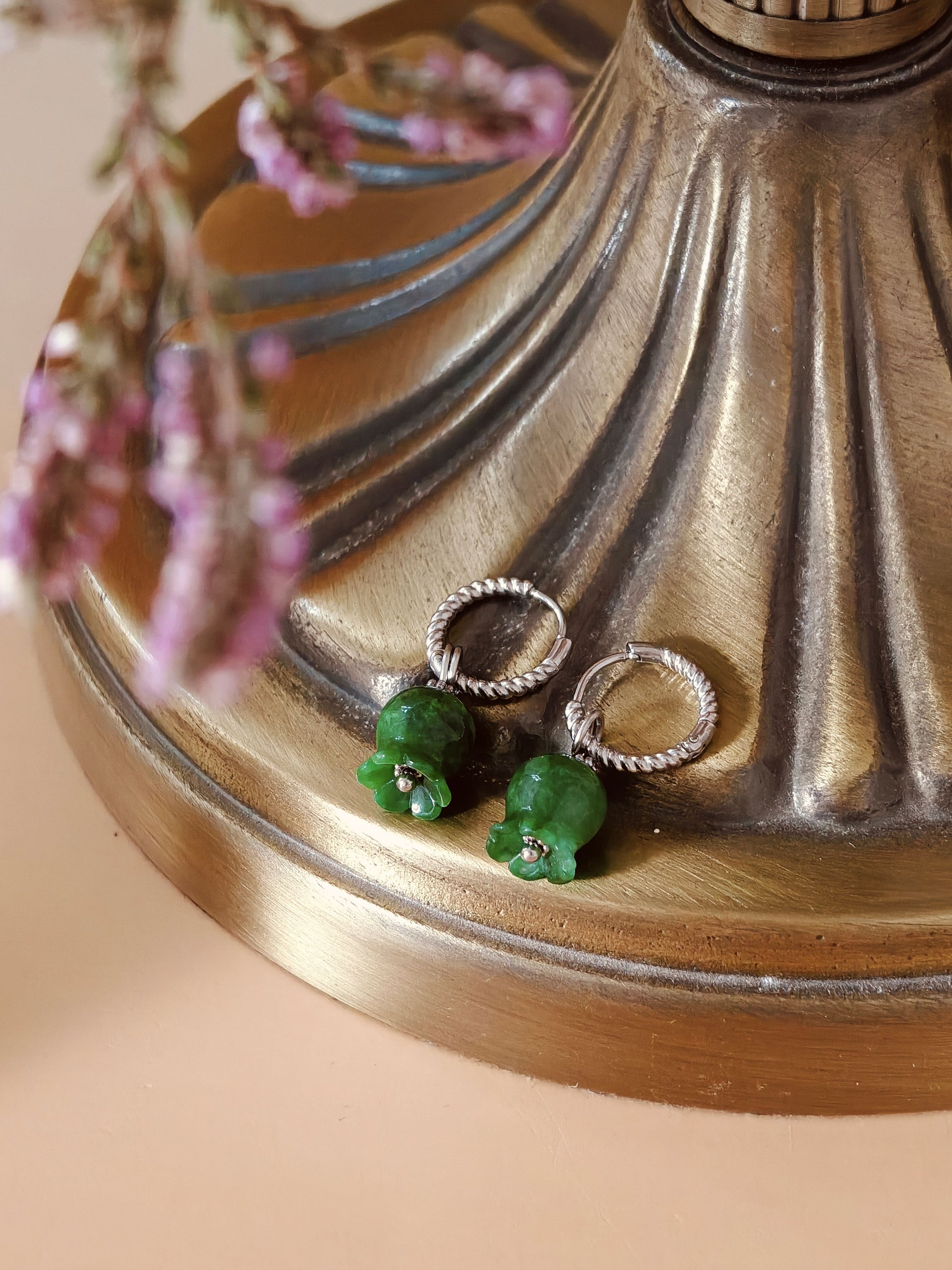 Green Jade is revered for its calming energy and protective qualities, symbolizing clarity, peace, and resilience. Paired with the lily—an emblem of purity and renewal—these earrings become wearable meditations on inner harmony and graceful transformation.