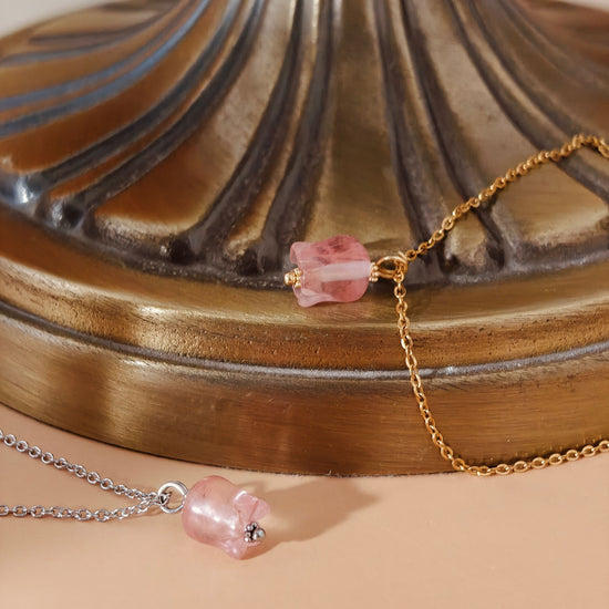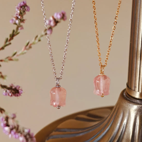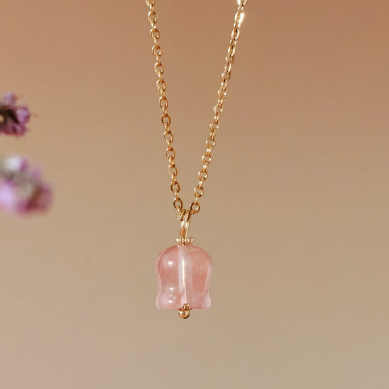 Elegant Rose Quartz Lily Necklace