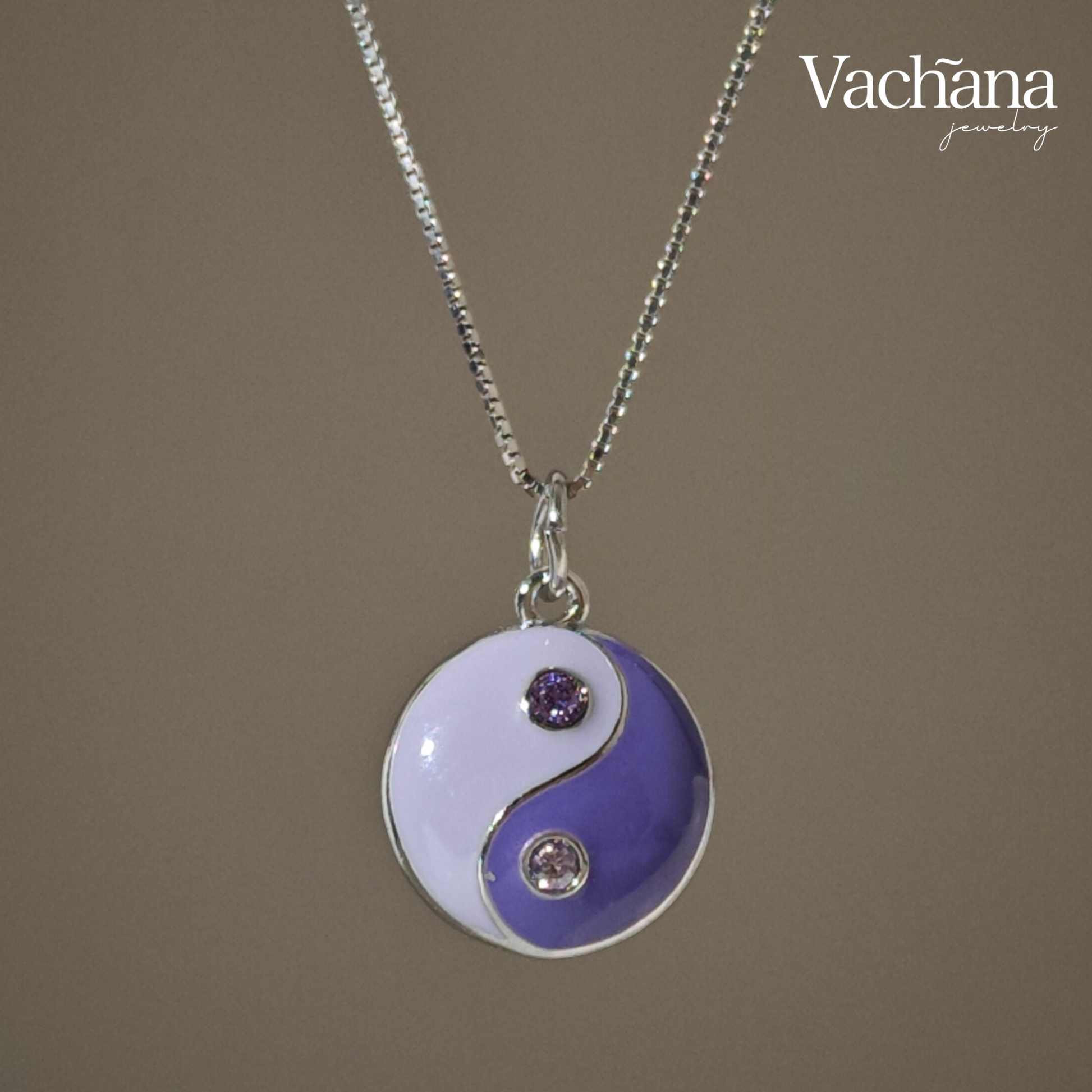 Purple Yin Yang 925 Sterling Silver Enamel Pendant Necklace