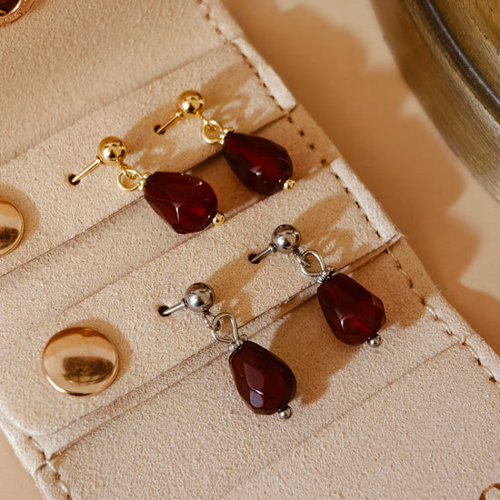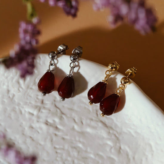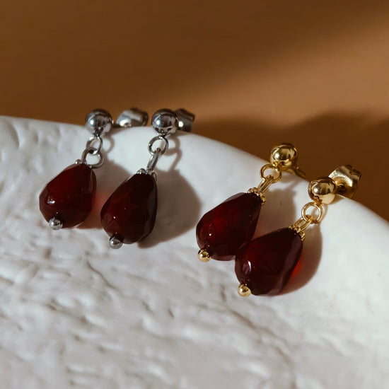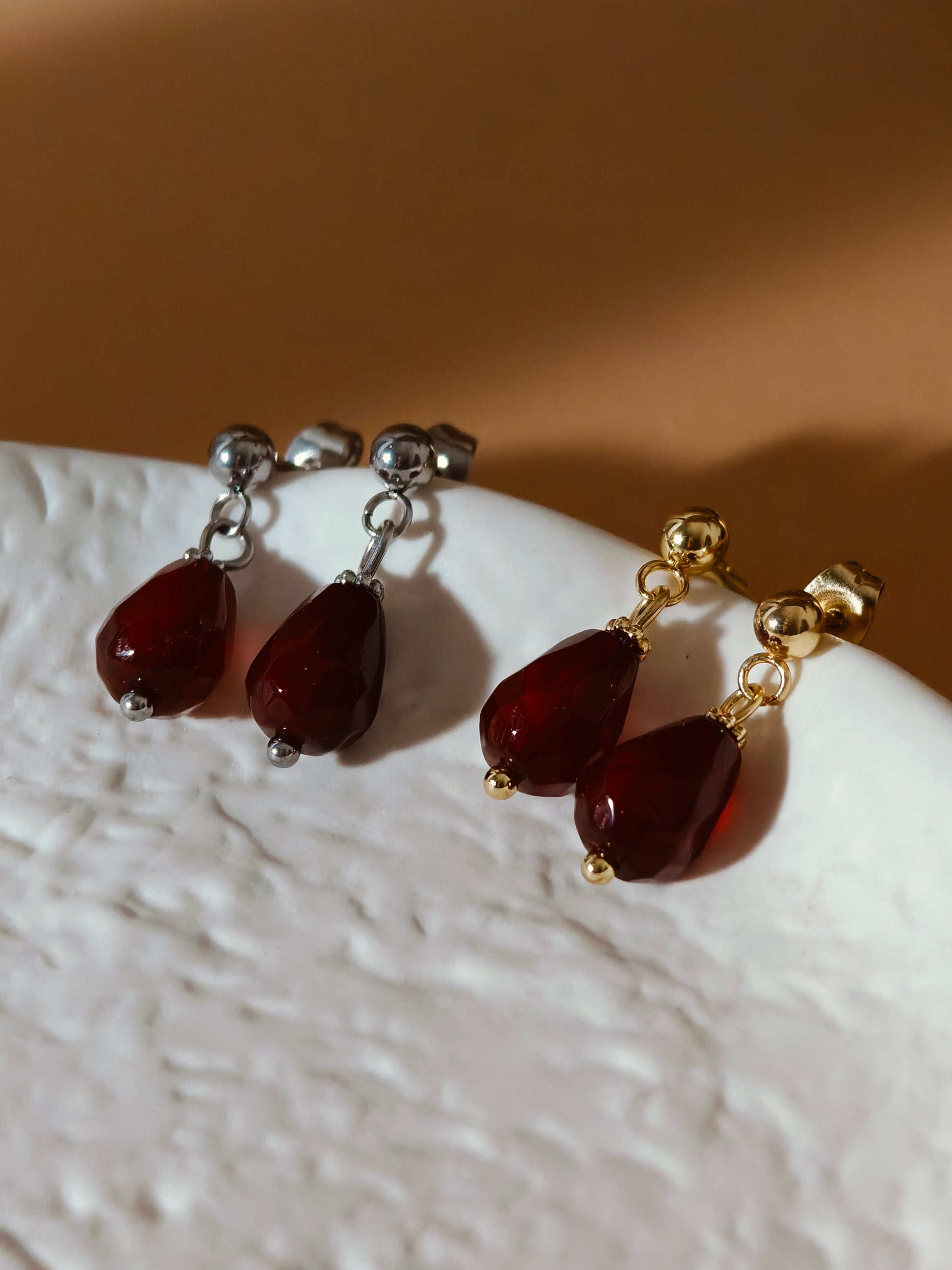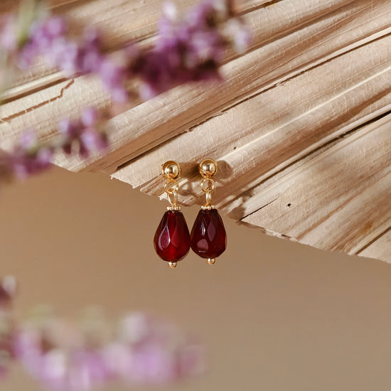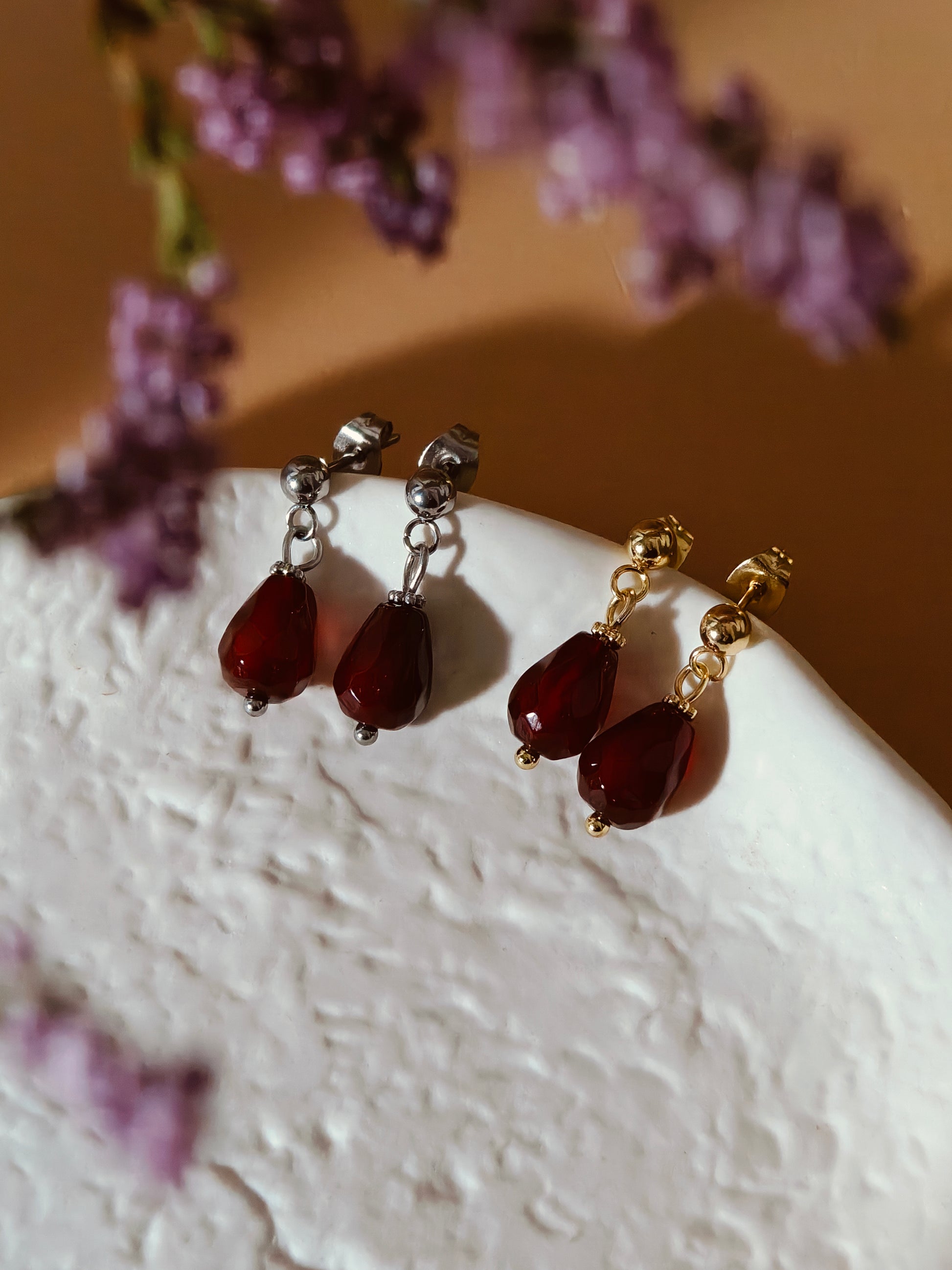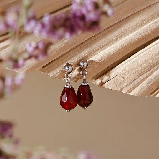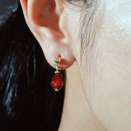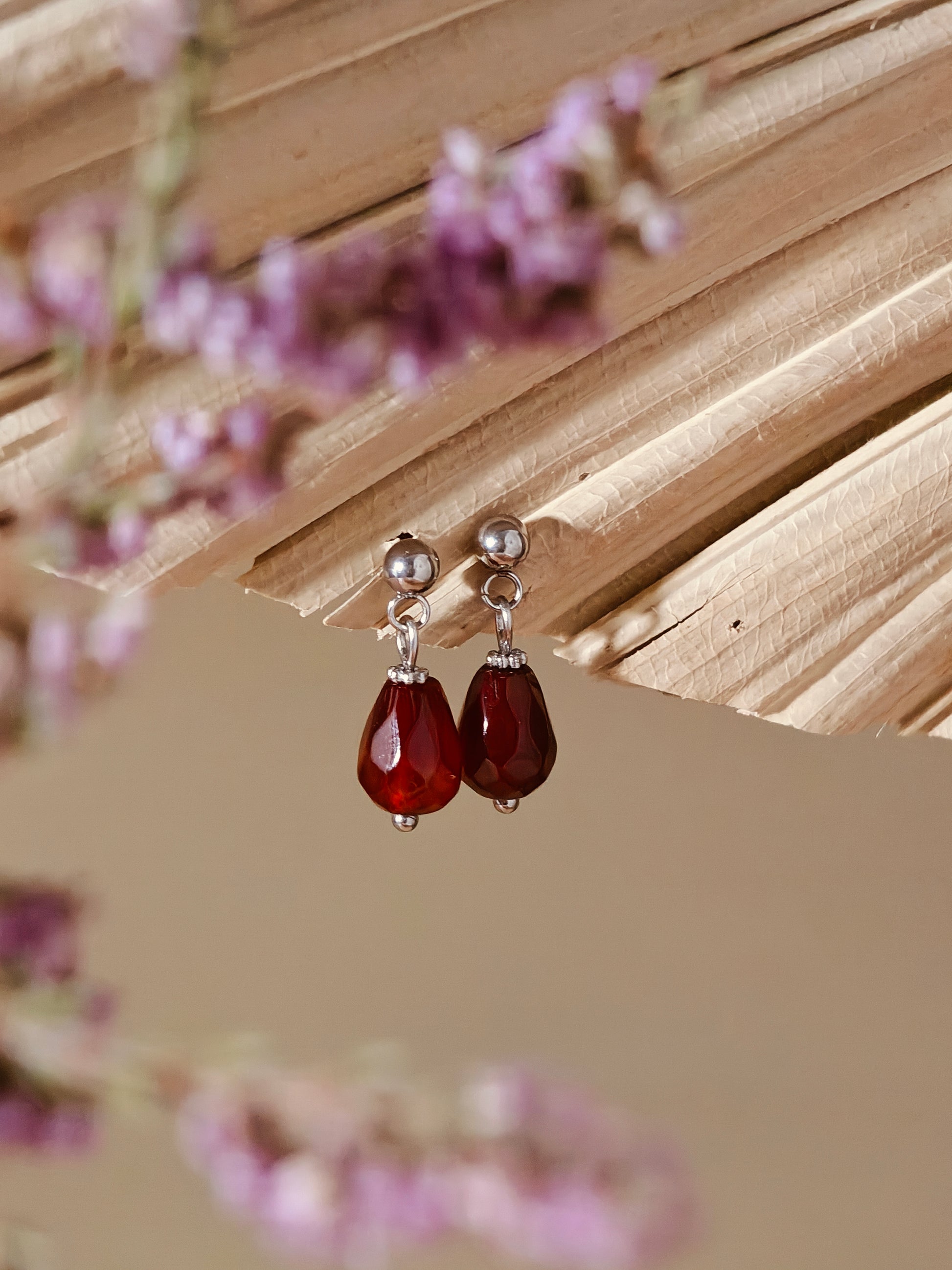 Red Agate Pomegranate Seed Ball Stud Earrings