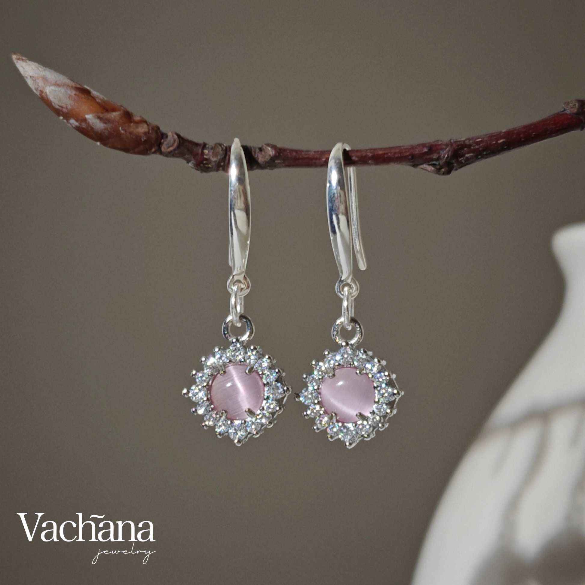 Features pink opals, which are known for their unique play-of-color and soft pink hues. Design: Dangle earrings with a shimmering effect as they catch the light, adding a touch of elegance and movement. Style: Versatile and suitable for various occasions, from casual outings to formal events.