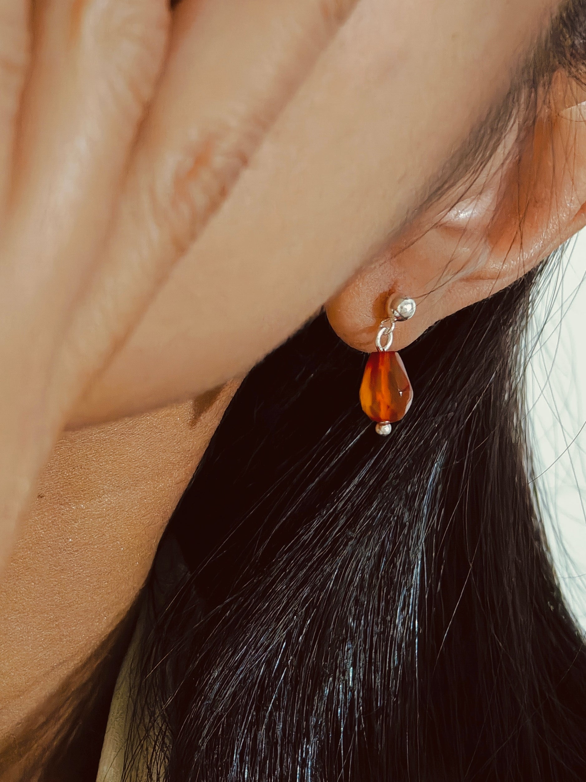 Vachana - Agate Faceted Pomegranate Seed Sterling Silver Ball Studs Earrings