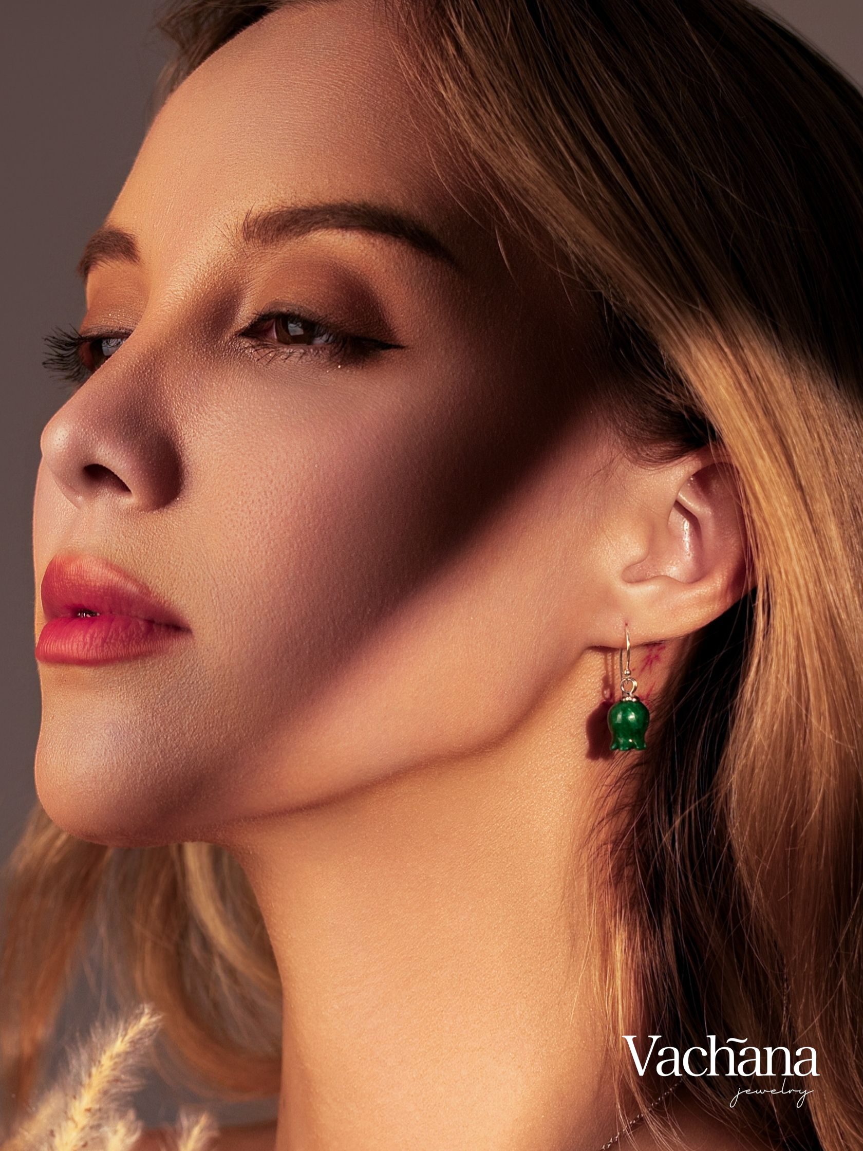 Vachana - Elegant Green Jade Lily Sterling Silver Earrings