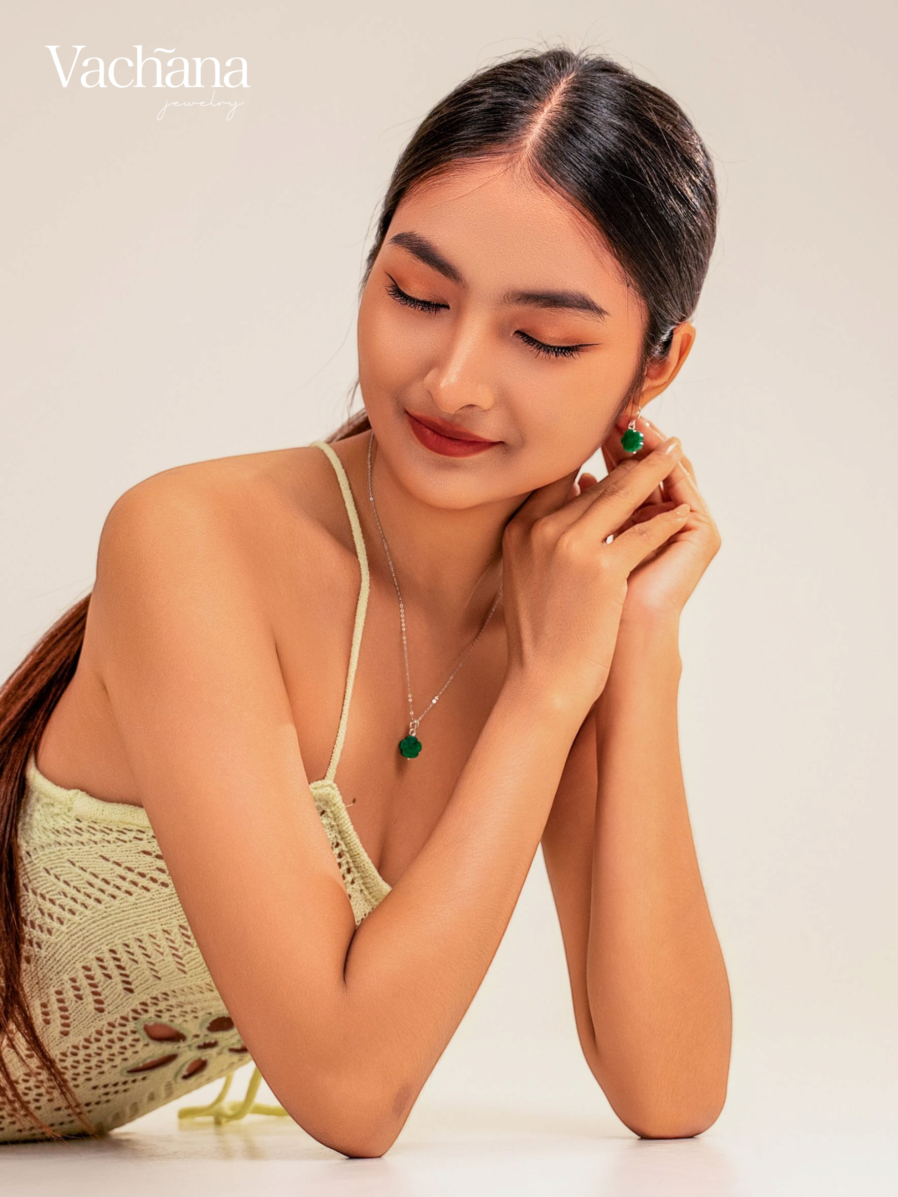 Crafted from high quality sterling silver 925 and green jade Myanmar flower shape —perfect for any occasion, from casual outings to formal events.