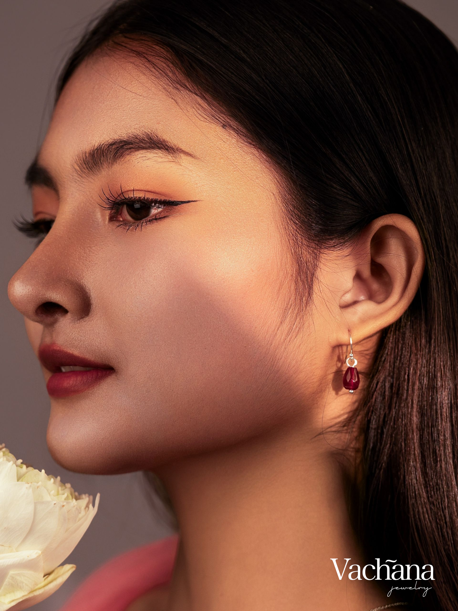 Vachana - Red Agate Faceted Pomegranate Seed Sterling Silver Earrings