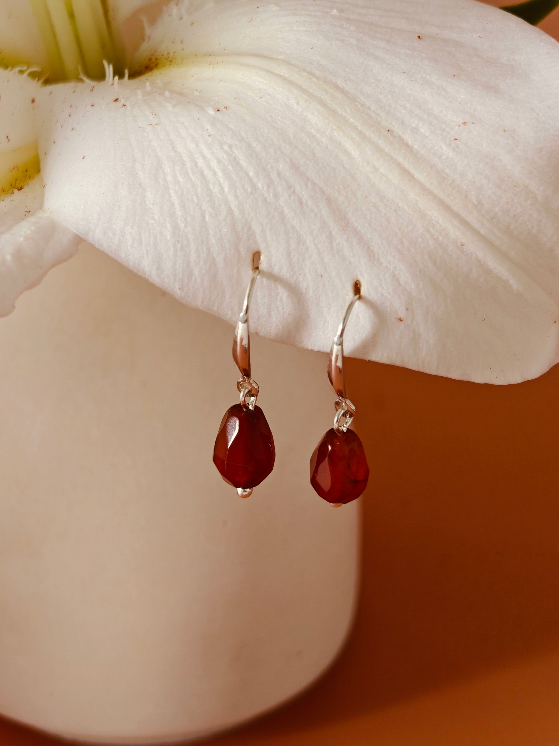 Vachana - Red Agate Faceted Pomegranate Seed Sterling Silver Hooks Earrings